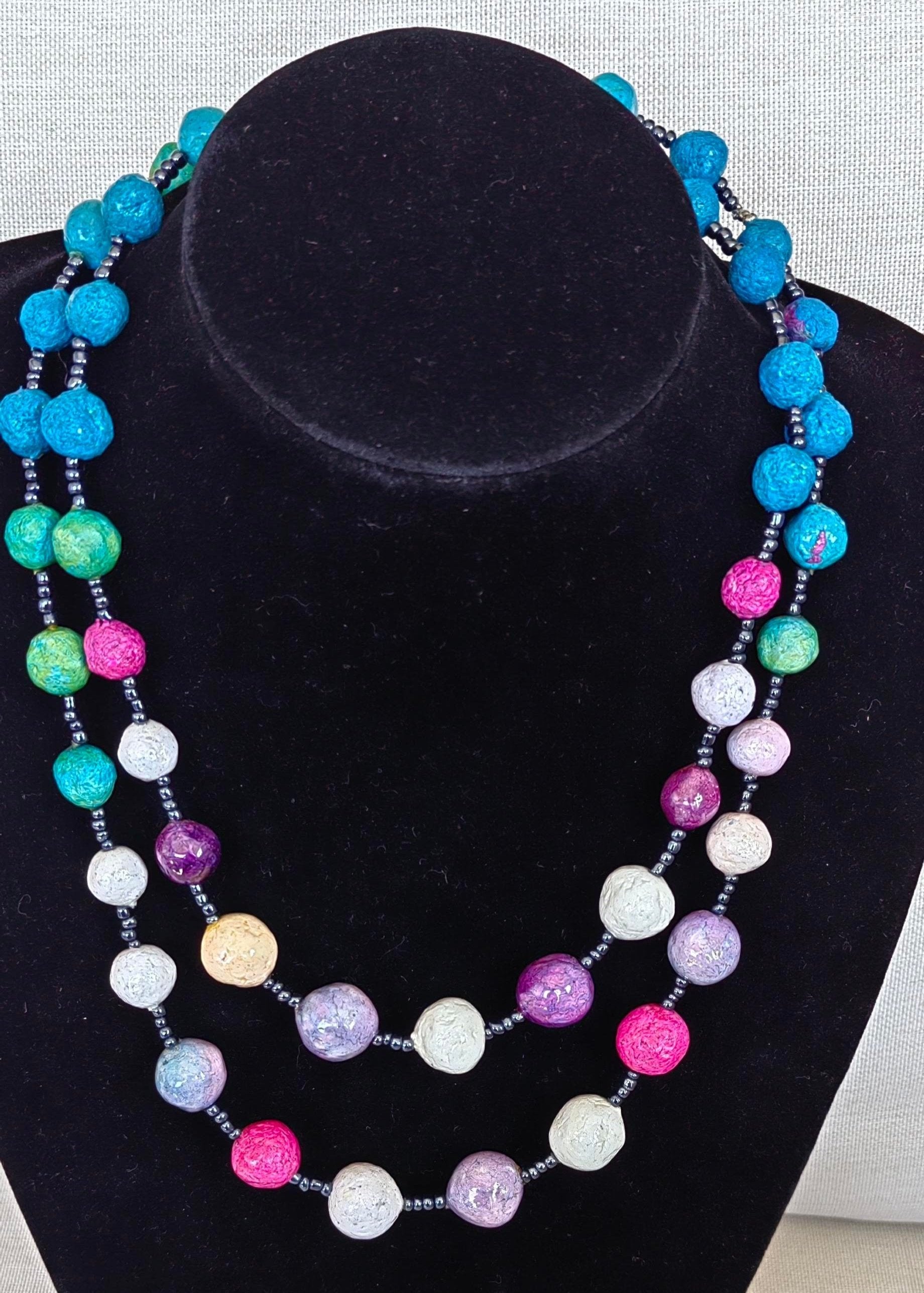 Paper Mache Beaded Necklace - Mixed (Blue - Pink - White)